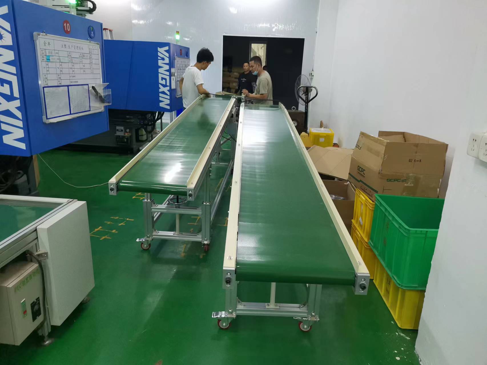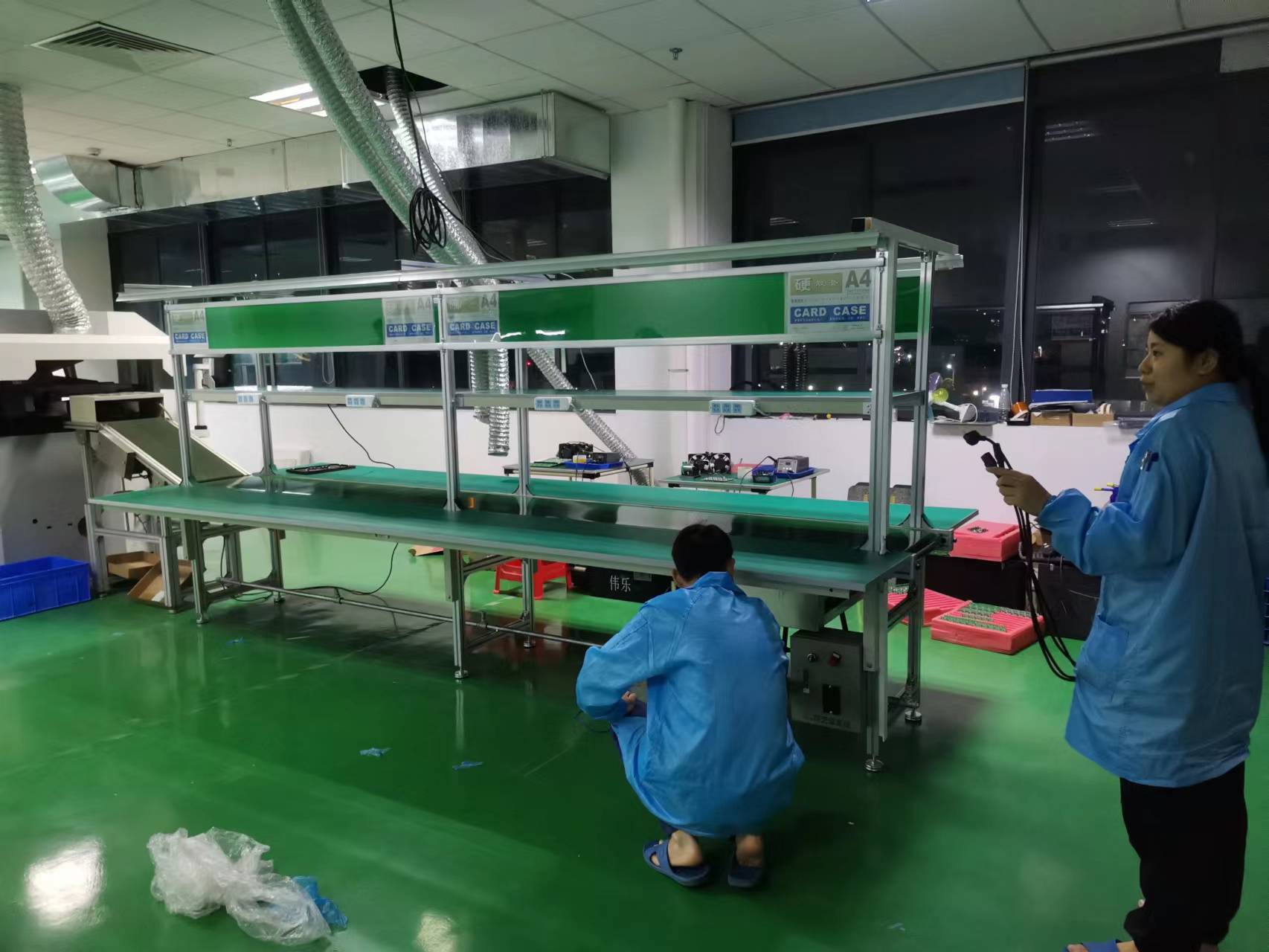 森伯马铝直型PVC流水线两条规格12000*300*1900MM,流水线专制定做已完成。